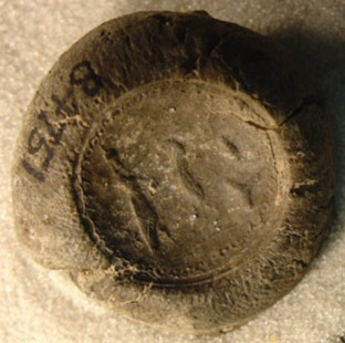 This 7th century clay sealing from Nineveh was originally applied to a folded papyrus document, as is clear from the distinct pattern impressed on its reverse – the only such sealing known so far from Assyria. The seal motif combines the lion-slaying king of the royal stamp seal with the emblems of the queen and the crown prince: the scorpion and the Y-shape, respectively. British Museum, BM 84751; photo by Karen Radner. View large image [/saao/aebp/images/essentials/governors/royalseal2-large.jpg].
