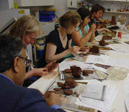 People writing tablets at a clay tablet workshop in September 2008, organised by the Enheduanna Society and sponsored by Birkbeck College, the British Institute for the Study of Iraq, and Holborn Community Development Project. Photo by Frans van Koppen. View large image.